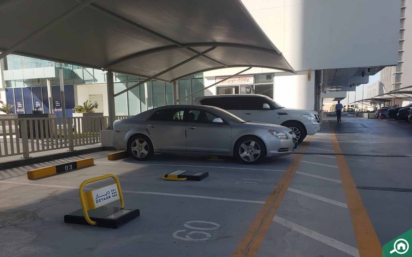 تتوزع مواقف السيارات على 3 طوابق سفلية، ويتم تخصيص مساحة تتسع لسيارة واحدة على الأقل لكل وحدة سكنية، بينما يمكن للزوار والضيوف الاستفادة من مساحات وقوف السيارات المتاحة خارج المشروع السكني.