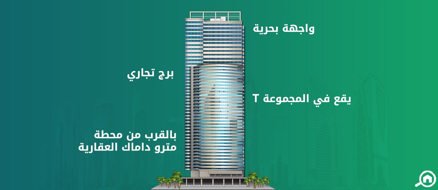 بالنسبة لمحطات المترو، يمكن لسكان البرج استقلال مترو من محطة مترو داماك على بعد 6 دقائق من المبنى. يجدر بالذكر أن التنقل بالسيارات الخاصة من وإلى البرج من الأمور السهلة لاتصال المنطقة مباشرة مع شارع الشيخ زايد.