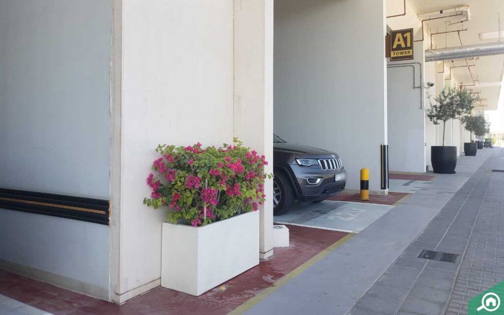 يتمتع السكان بتوفر مواقف سيارات مظللة في الطابق الأرضي، حيث يتم تخصيص موقف سيارات واحد على الأقل لكل شقة، بالإضافة إلى مواقف سيارات خارجية عديدة متاحة لكل من السكان والزوار.