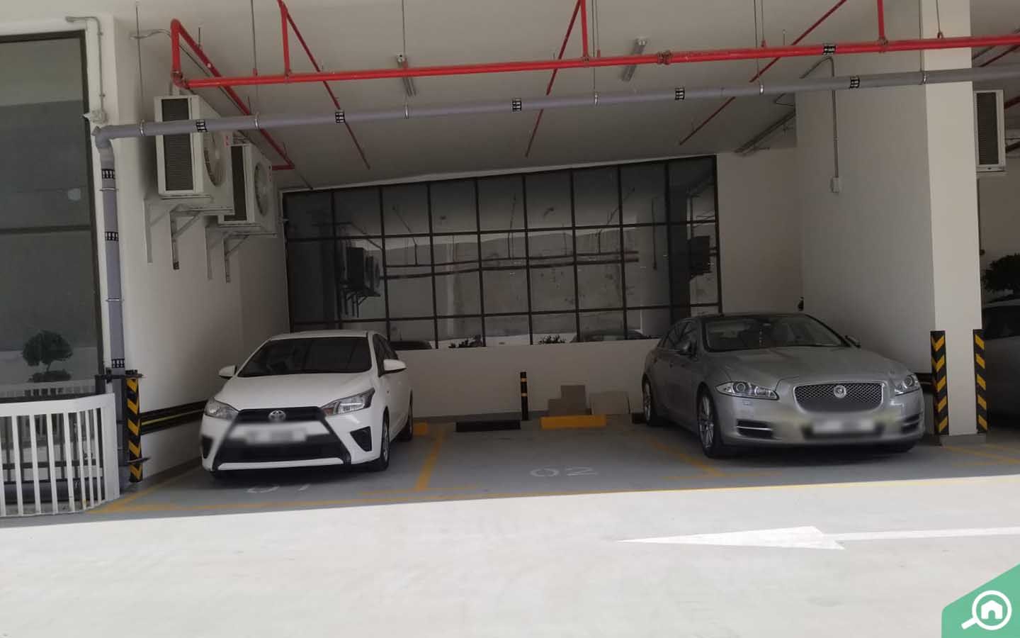 There is covered parking in Binghatti Point DSO for residents. Visitors will find street parking spaces outside the tower.