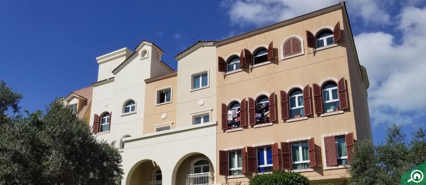 Studio apartments in Building 71 Mediterranean Cluster include one bathroom, a kitchen and a balcony. The covered areas are around 527 sq. ft.
