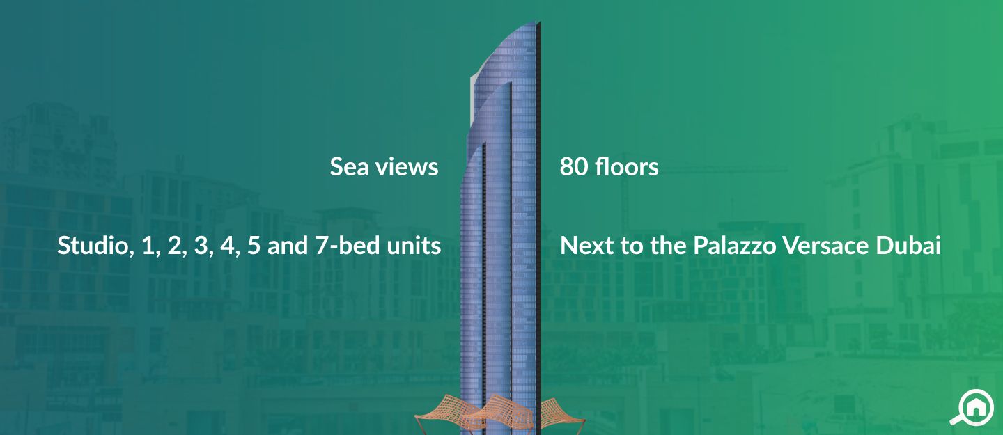 ReadyDubai Culture Village is a waterfront community with many high-rise residential towers and D1 Tower is one of them. This skyscraper features an estimated height of 284 metres (932 ft.) consisting of 80 floors. Overall, the building has around 528 units with studio, 1, 2, 3, 4 and 5-bedroom apartments. There are also 7-bedroom penthouses housed on the top floors of the tower.