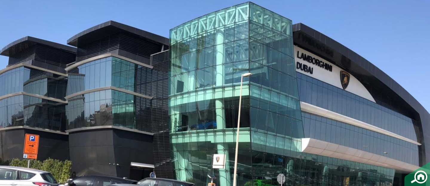 ReadyLamborghini Building is a state-of-the-art commercial building. It is located on Sheikh Zayed Road and was developed by Al Jaziri Developments in 2017. The development has three storeys above the ground and a basement. This leasehold building offers fitted offices, fitted half floors and fitted full floors, and various facilities like a spa and zen room. It is also famous for housing the world’s largest Lamborghini showroom that offers new and used Lamborghini cars, spare parts and servicing facilities.