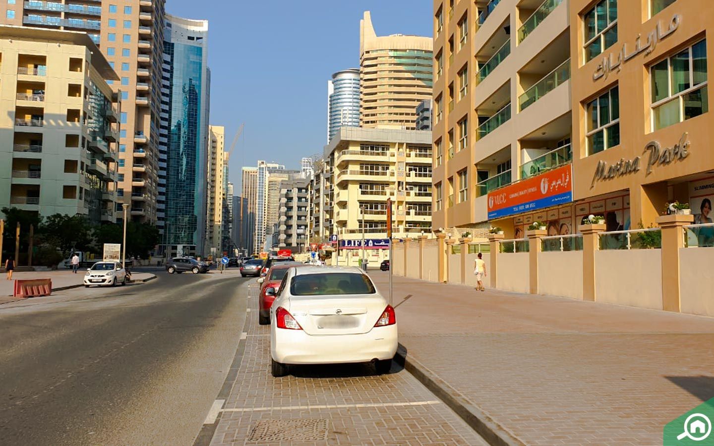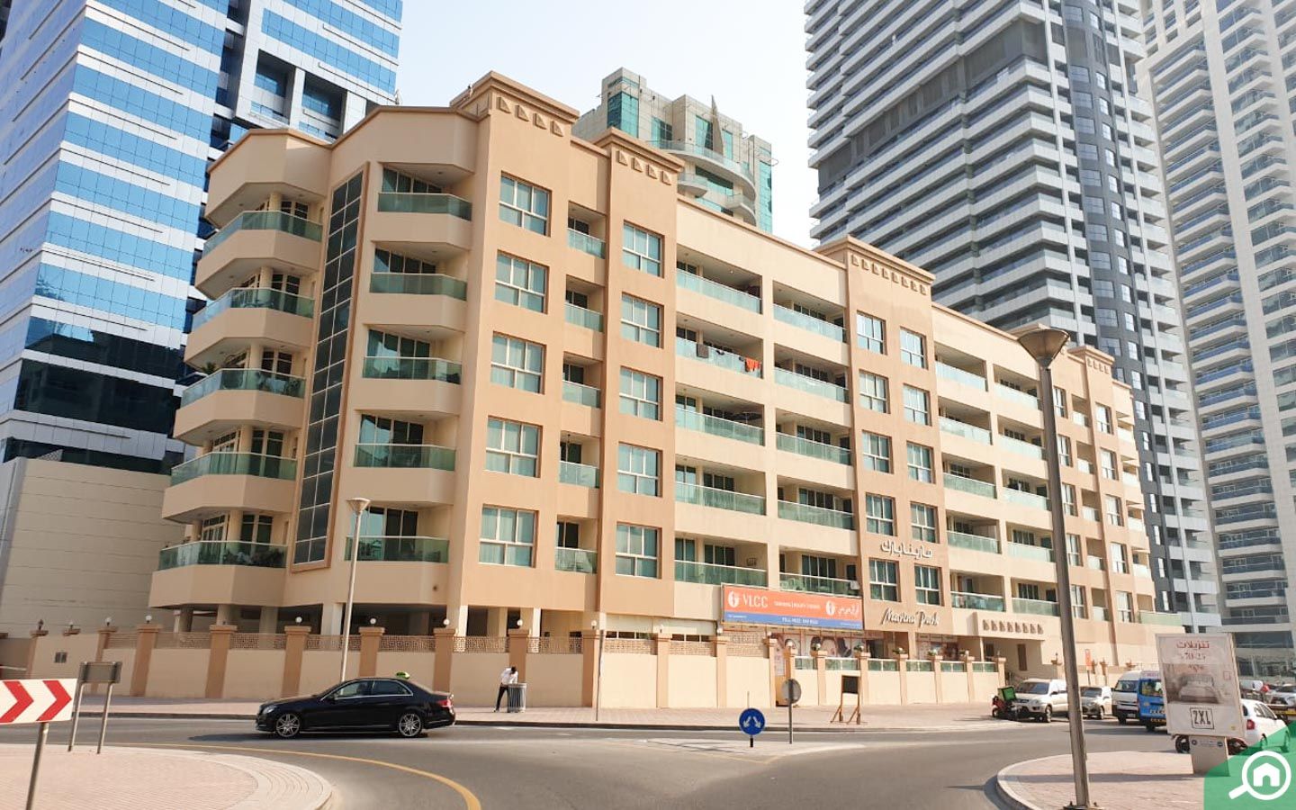 There are many commercial and residential projects in the vicinity. Also, many hotel apartments are dotted along the street. Some residential neighbours of Marina Park include Escan Tower, DAMAC The Waves and ARY Building.