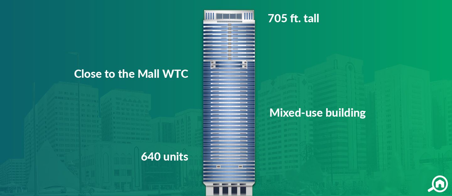 ReadySama Tower is situated on Electra Street, one of the most popular and the oldest areas of Abu Dhabi. This 50-storey mixed-use tower is developed by Al Ain Properties. It occupies a total area of 11,000 sq. m and has 640 residential units. There are several commercial units as well that are present on 7 dedicated office floors below residential floors. All units are designed lavishly to maintain a comfortable lifestyle.