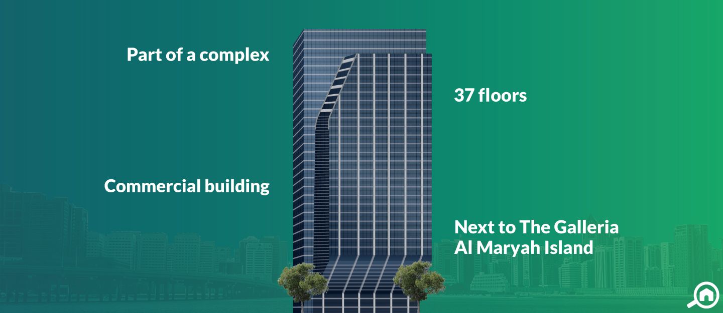 ReadySowwah Square Tower 4 is a high-rise commercial building located in Al Maryah Island. This public shareholding company showcases a glassed architecture on the outside. With 37 floors in its vicinity, this corporate building features multiple fully-fitted offices that come with various facilities and conveniences. There are multiple high-speed elevators, repair services, kitchen pantries and floor to ceiling windows. Each of the offices have been designed to showcase the bustling community of Al Maryah Island. On the inside, this commercial building has a wide lobby that has been made with ceramic marbles and titled ceilings to present a modern outlook.