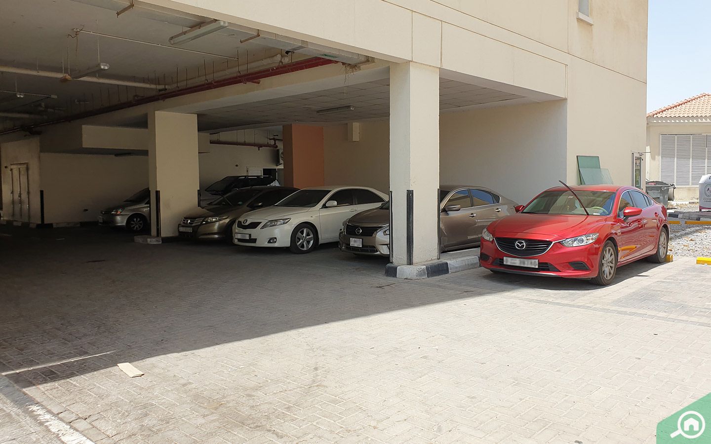 Parking is distributed on the ground floor where residents can find covered spaces. However, visitors may need to look for street parking options.
