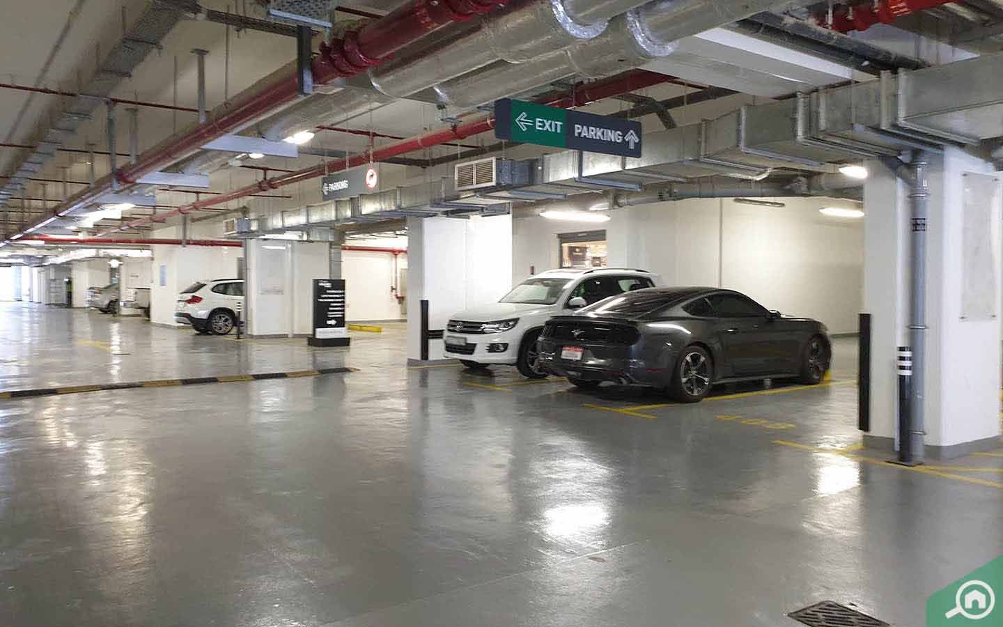 There is covered parking in Zahra Breeze Apartments 4A Town Square.
