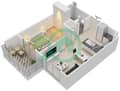 2D and 3D floor plans for Type 3 1-bathroom 1-bedroom Apartments in Al Ramth 01, Remraam. Al Ramth 01 has 17 more floor plans for different types of Apartments.