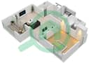 2D and 3D floor plans for Type L 2-bathroom 1-bedroom Apartments in Al Ramth 01, Remraam. Al Ramth 01 has 17 more floor plans for different types of Apartments.
