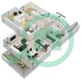 2D and 3D floor plans for Type 1 4-bathroom 2-bedroom Apartments in Cilia Building 8, Ghaf Woods. Cilia Building 8 has 4 more floor plans for different types of Apartments.