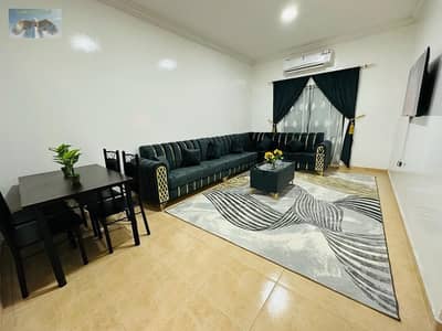 Fully furnished apartment with internet, one bedroom and a hall with a large balcony for monthly rent in Al Muwaihat 2 in Ajman