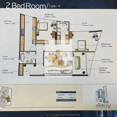For sale, a distinctive apartment in Sharjah - Al Taawun area, Tiger Tower 2, with an area of 1,537 square feet. It includes 2 bedrooms and 2 bathrooms, a spacious living room with a balcony, a large kitchen with a window, and functional wardrobes in all rooms and the living room. The apartment includes a private parking space and is vacant and ready for immediate occupancy. Building amenities include a gym and an excellent swimming pool. A prime location close to all services and facilities. Price: 700,000 dirhams.