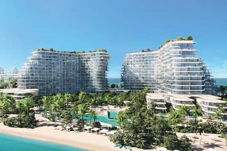 Waterfront development on the Palm Jumeirah crescent by Beyond Properties, featuring sculptural twin towers and resort style amenities.