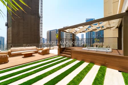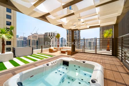 This expansive residence spans 6,191 sq. ft. and features upgraded interiors with premium finishes, high-end furnishings, two massive terraces with private pool, jacuzzi and sweeping views of Dubai Marina.