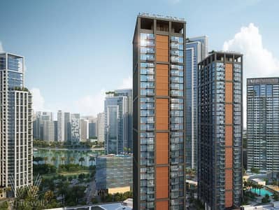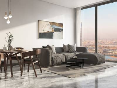 A modern studio apartment in Peninsula Two, located on a high floor with a balcony and breathtaking views of the Burj Khalifa. Handover in 2025. Delivered with high-quality finishes and a fitted kitchen, offered unfurnished.