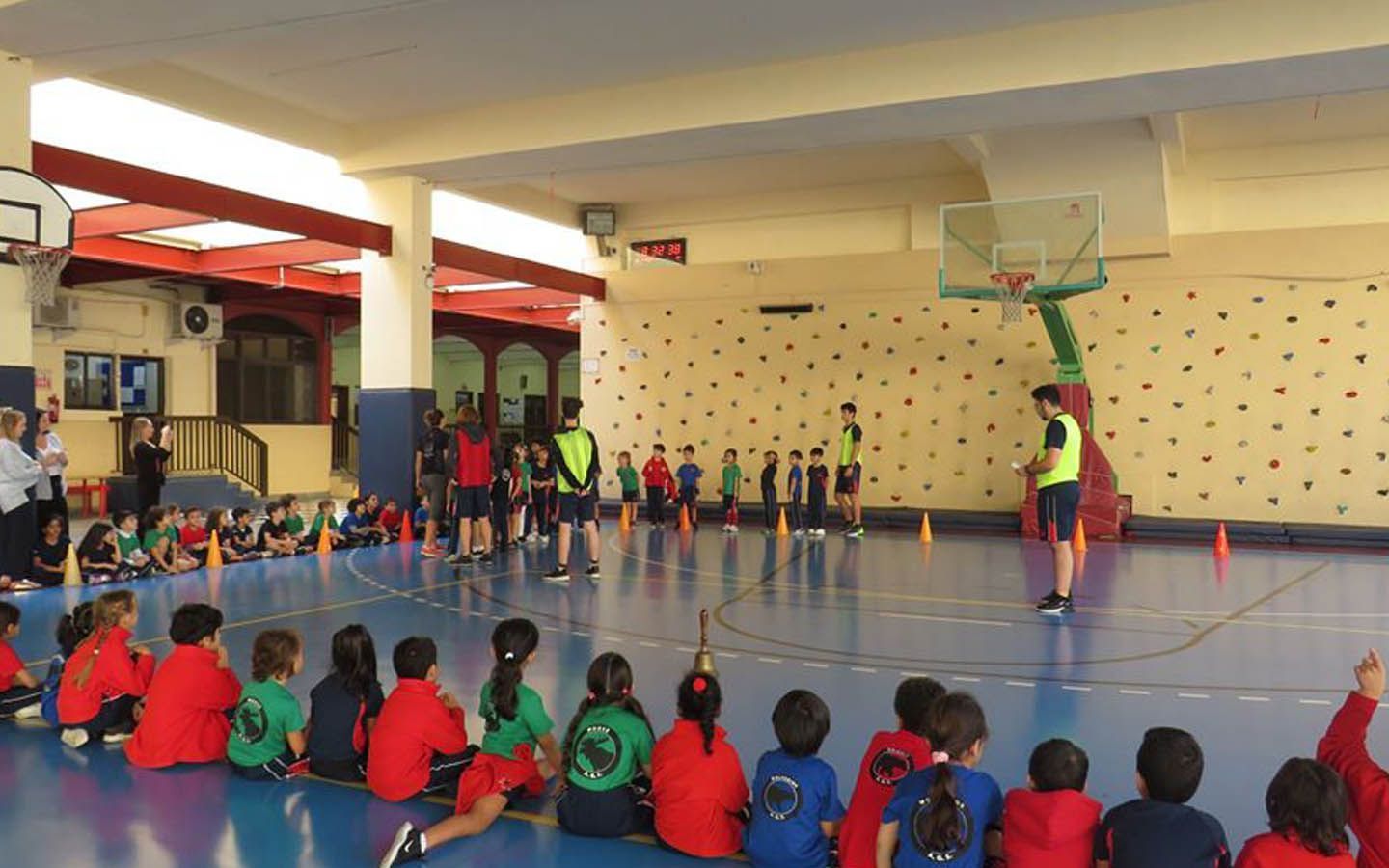 An indoor multipurpose sports hall is available for indoor activities such as athletics, badminton, table tennis and gymnastics. A well-furbished gymnasium and a swimming pool were included in 2010. Additionally, the school has outdoor play areas, fields and courts for basketball, field hockey, handball, netball and football.