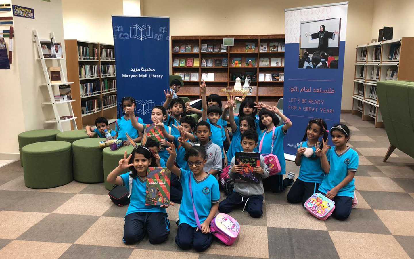 رحلة ميدانية لطلبة المدرسة الحديثة الخاصة إلى مكتبة مزيد مول (مصدر الصور: صفحة الفيسبوك الرسمية للمدرسة الحديثة الخاصة)