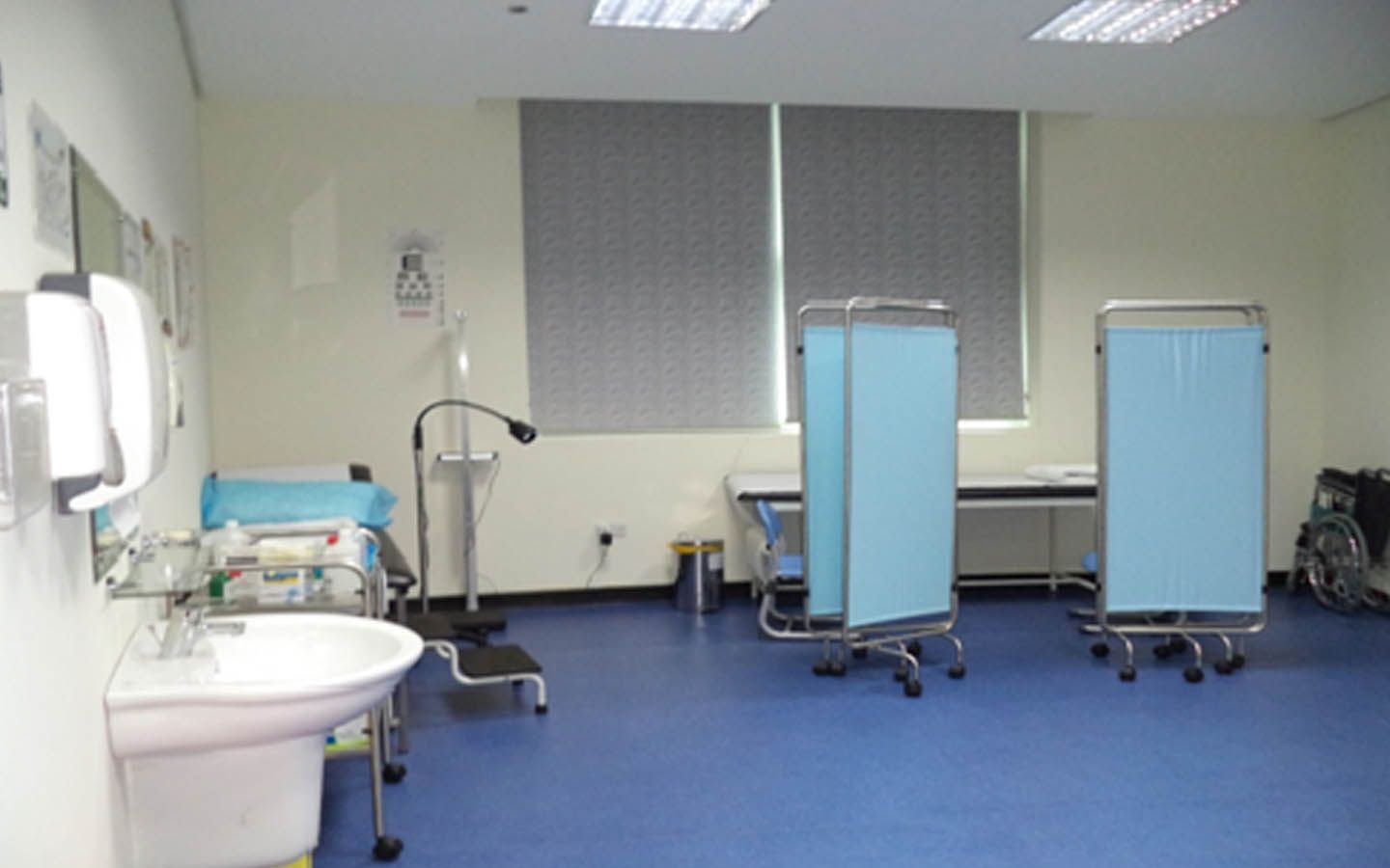 تضم العيادة إلى جانب غرفة الاستقبال غرفة للعلاج مخصصة للطلاب الذين يحتاجون إلى انتظار أولياء أمورهم لاصطحابهم.