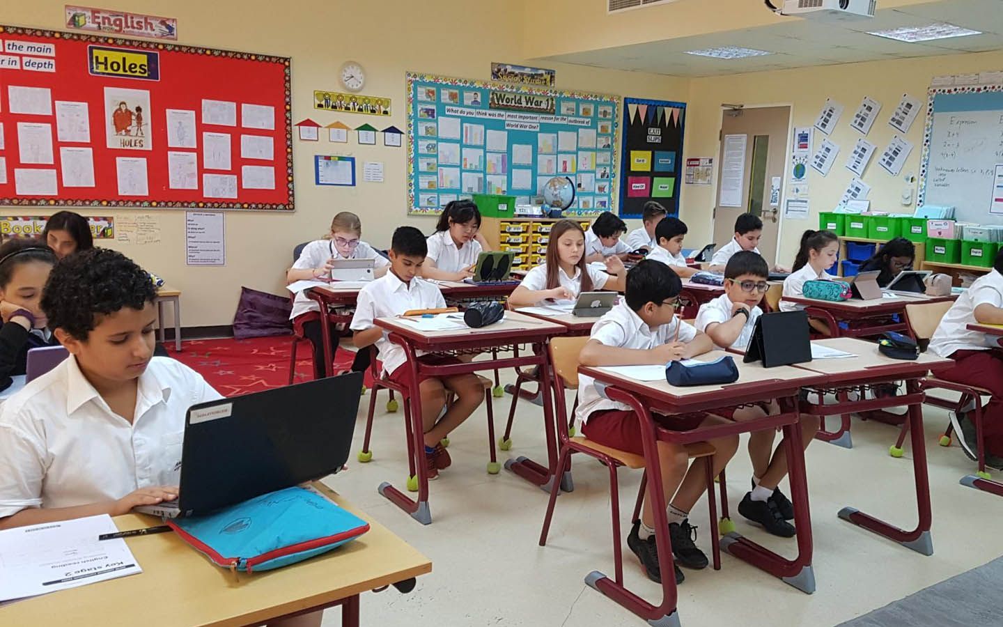 Most students are Arabs, so the school also offers a programme where English is taught as an Additional Language. Fluency in English is not a requirement for entry/admission until Year 9 and most students develop their language skills after joining the school.