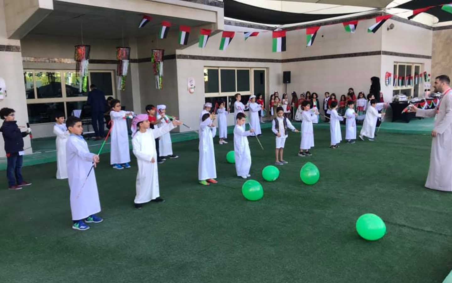 Teachers ensure that students develop in all the aforementioned areas of the curriculum. The teaching approach at this stage is engaging and interactive. From Kindergarten 1, teachers use interactive screens and other technologies for teaching. The medium of instruction in the kindergarten phase is English. Arabic is also taught to students in the kindergarten stage.