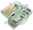 Sea La Vie Tower 4、雅斯岛 类型A 2-卫生间 1-卧室 公寓 的二维和三维户型图。