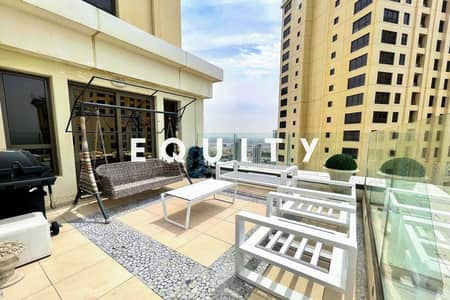 This modern-style unit offers a huge terrace, a rare feature in JBR, providing expansive outdoor space with breathtaking views of the sea, Bluewaters Island, and Palm Jumeirah.