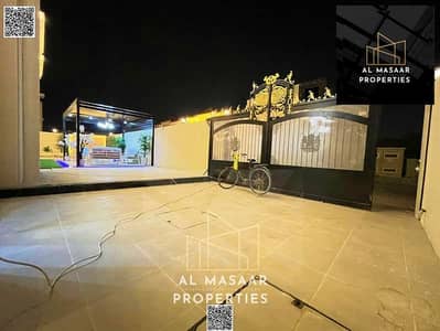 A very large setback that can accommodate 8 cars, along with a spacious interior courtyard with modern décor, two seating areas with waterfalls, elegant umbrellas, and a shaded internal parking space that can accommodate two cars