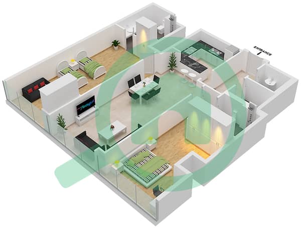 - 2 Bedroom + Maid