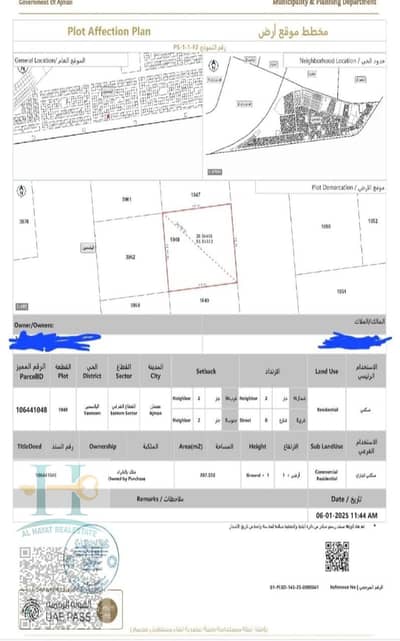 Residential and commercial land for sale in the Al Yasmeen area, Ajman.