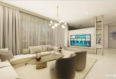 Apartment consist of living room with open plan kitchen and floor to ceiling windows overlooking the villas community Meadows and view on Emirates Hills.