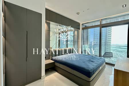 Both bedrooms are fitted with custom-built wardrobes and premium finishes. The master suite offers direct access to a large balcony, perfect for enjoying the panoramic marina and ocean views.