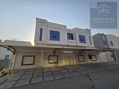 Consists of 5 master bedrooms, a living room, a hall, 7 bathrooms, a maid's room, a kitchen, a prep kitchen on the first floor, indoor parking, outdoor parking, and a canopy in the back. Price: 1,950,000 dirhams, negotiable.