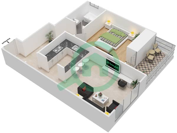 - 1-Bedroom Layout