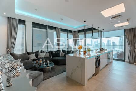 This premium two-bedroom apartment with maid’s room is located in Catch Residences by IGO, Jumeirah Village Circle District 12. The unit is on a high floor and offers panoramic city views with modern finishes throughout.