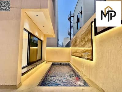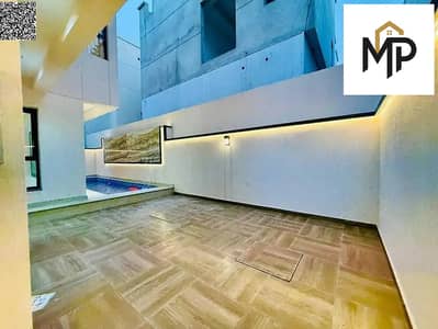 Villa for sale - two floors and a roof with a barbecue area and a large courtyard - close to Sheikh Mohammed bin Zayed Road - freehold for all nationalities for life with easy bank financing. We can also cover the down payment.