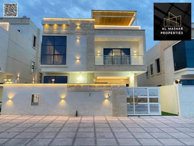 Villa for sale - two floors, roof, and large courtyard - close to Sheikh Mohammed bin Zayed Road - freehold for all nationalities for life - with easy bank financing.